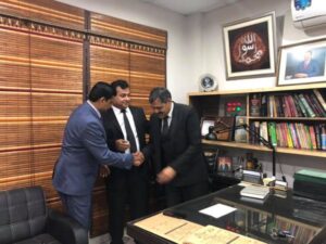 A delegation of International Lawyers Club UK (ILCUK) including President Manchester ILCUK Abdul Sattar Rana and Information Secretary ILCUK Shahid Nadeem Sandhu met with Pir Masood Chisti a prominent Lawyer, former President Lahore High Court Bar Association and Chairman Executive Punjab Bar Council. He promised and assured his support for the demand of British overseas Pakistani Lawyers to acquire the practising Licence of Supreme Court of Pakistan.